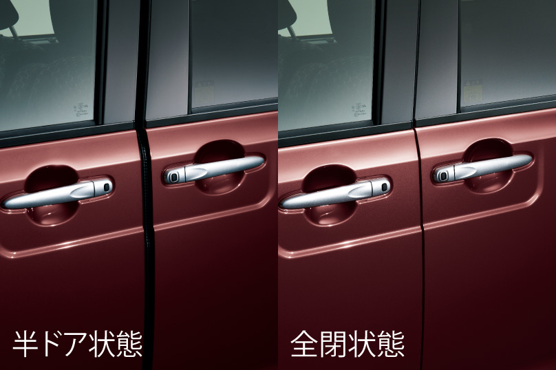 イージークローザーは、半ドアの位置まで閉めると、あとは自動的に全閉する便利な装備です。