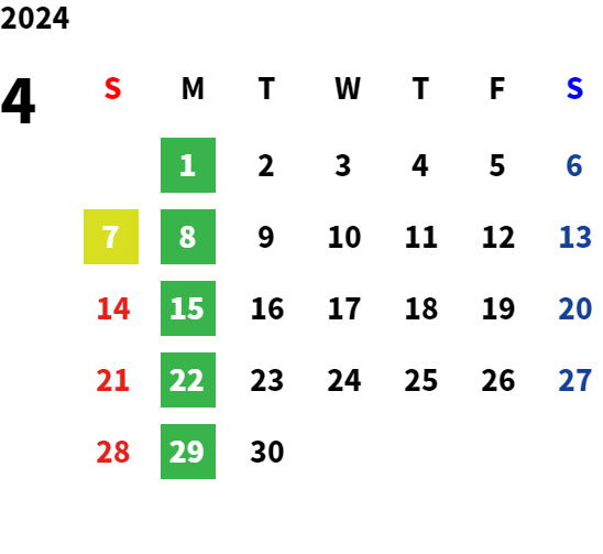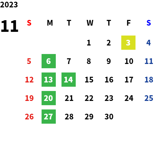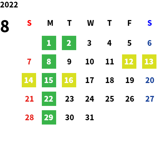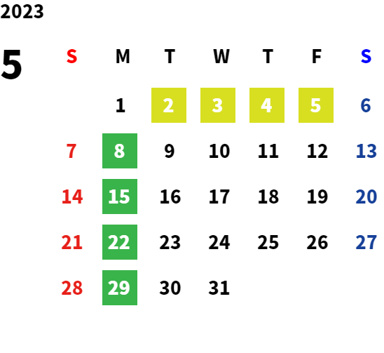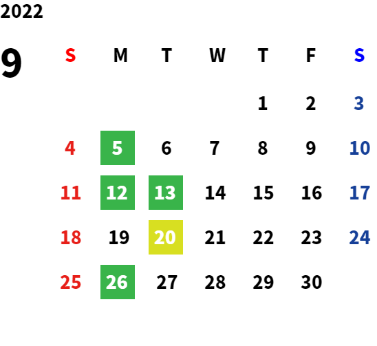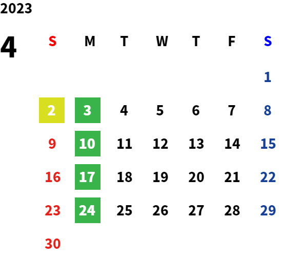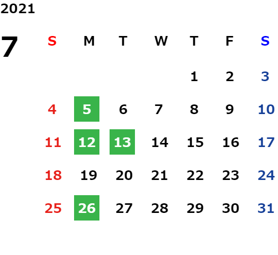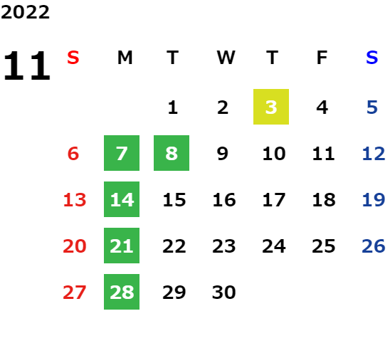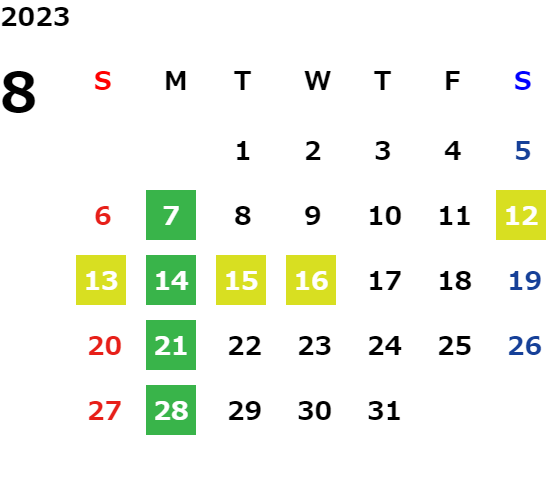 営業日カレンダー